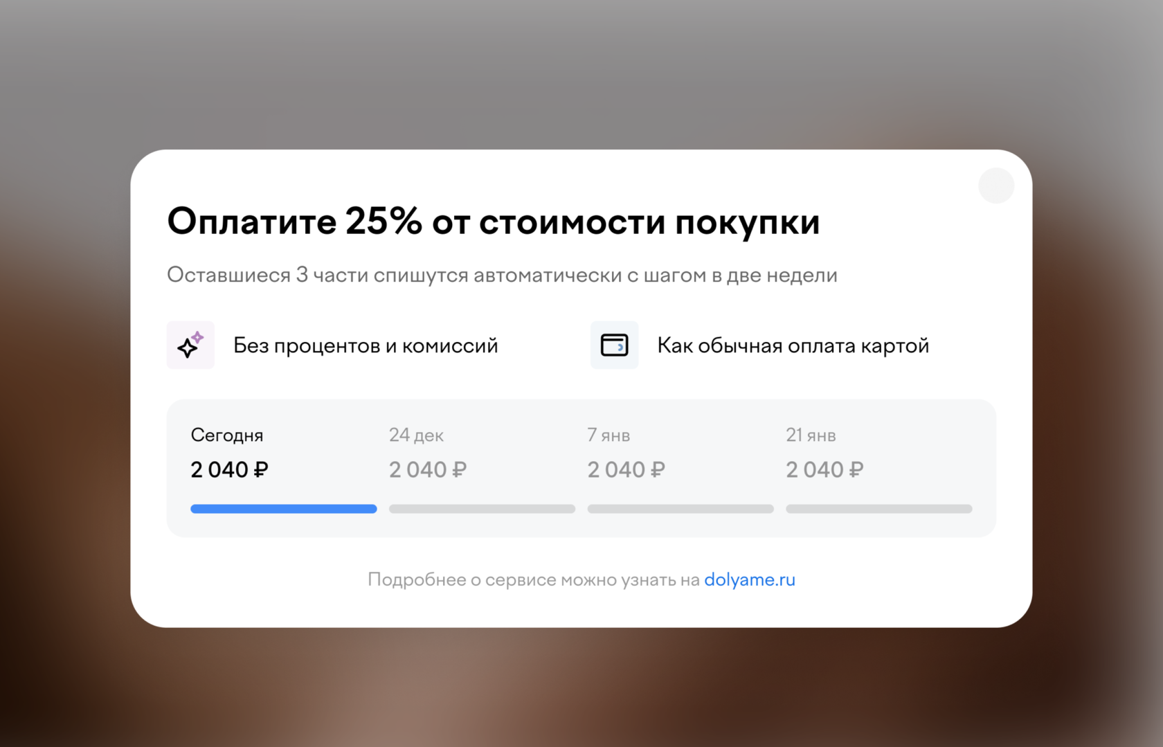 *Оплата долями доступна только для покупки от 5 сеансов (включительно) и абонементов